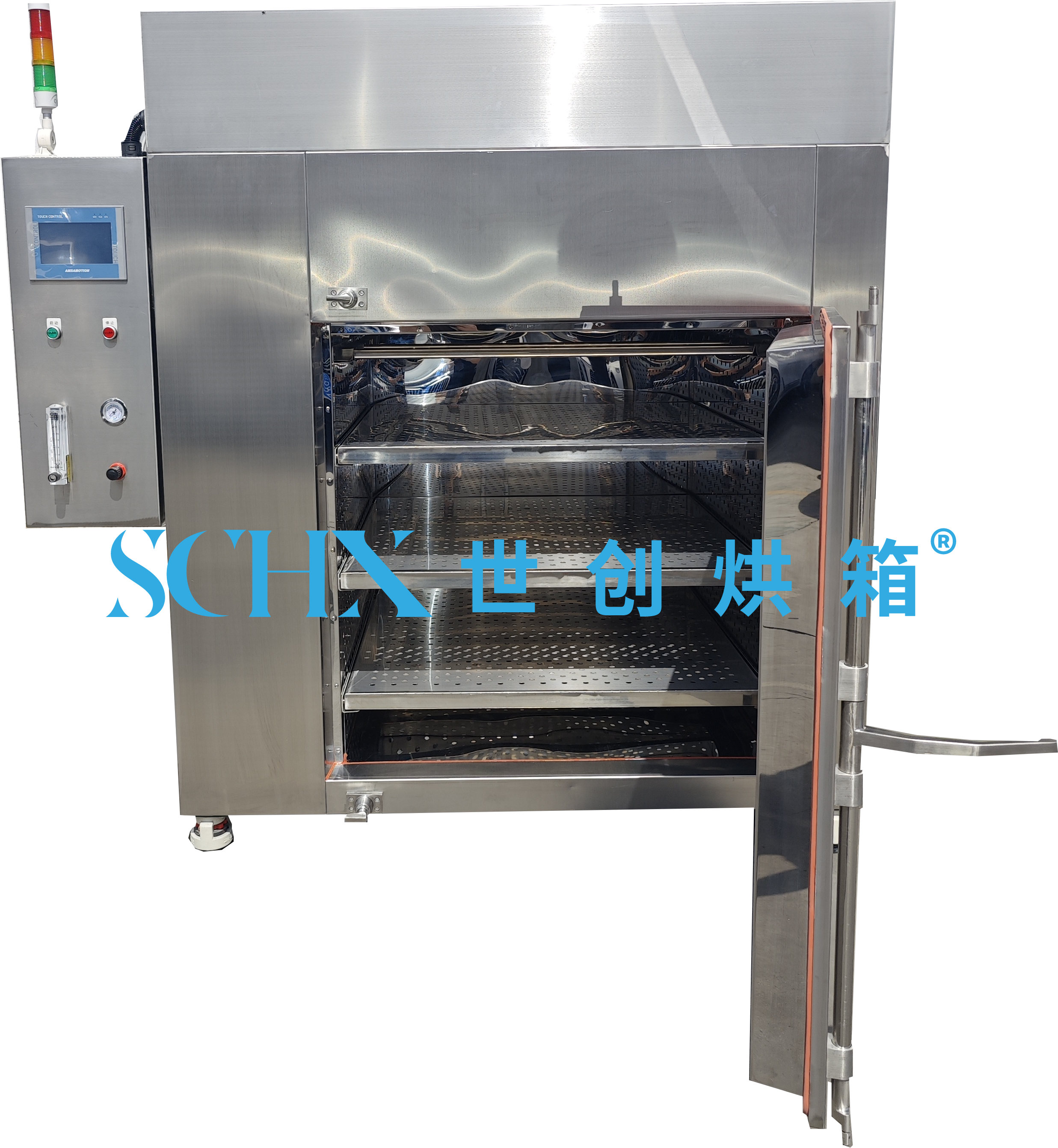 7、烘箱内部:可选分层式隔板、分层式网板、分层式托盘、小车式隔板、小车式网板、小车式托盘、手动台车、电动台车、千层架推车、子母推车、轨道式推车、等等。